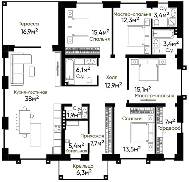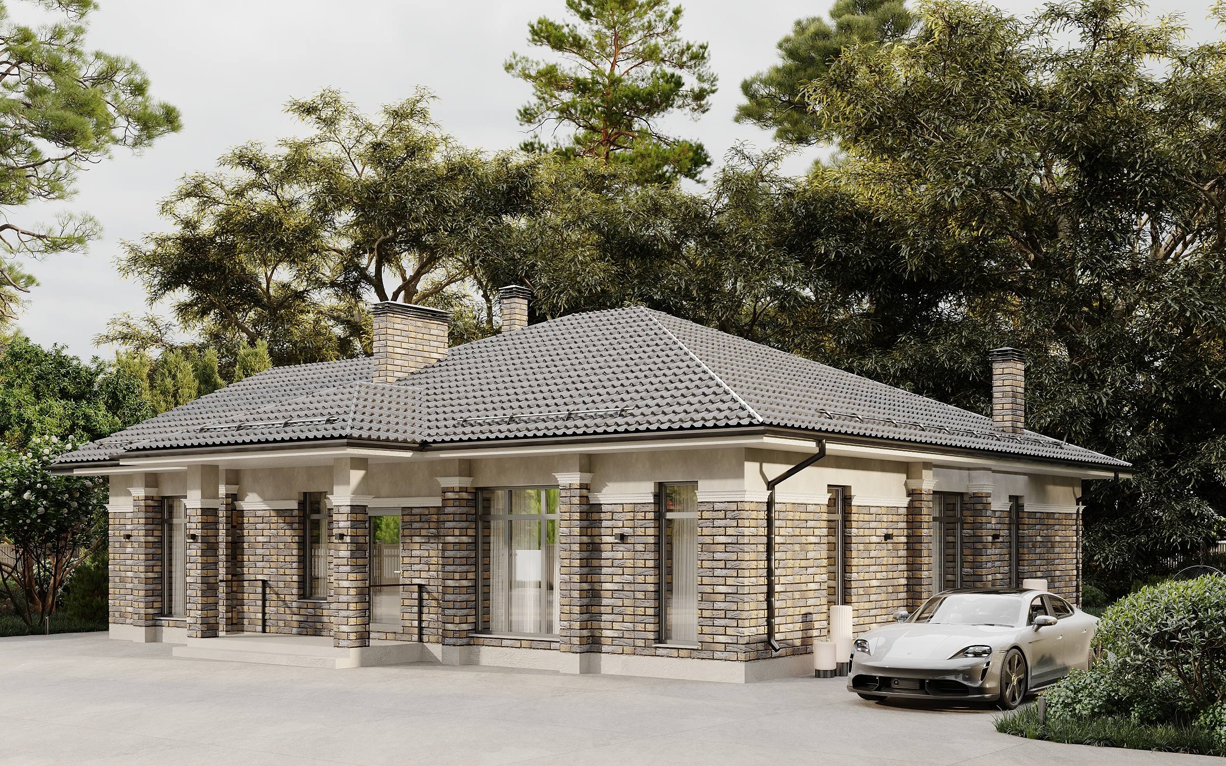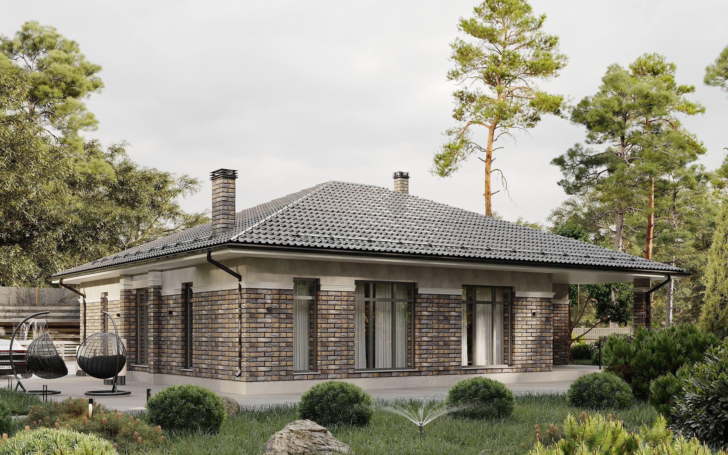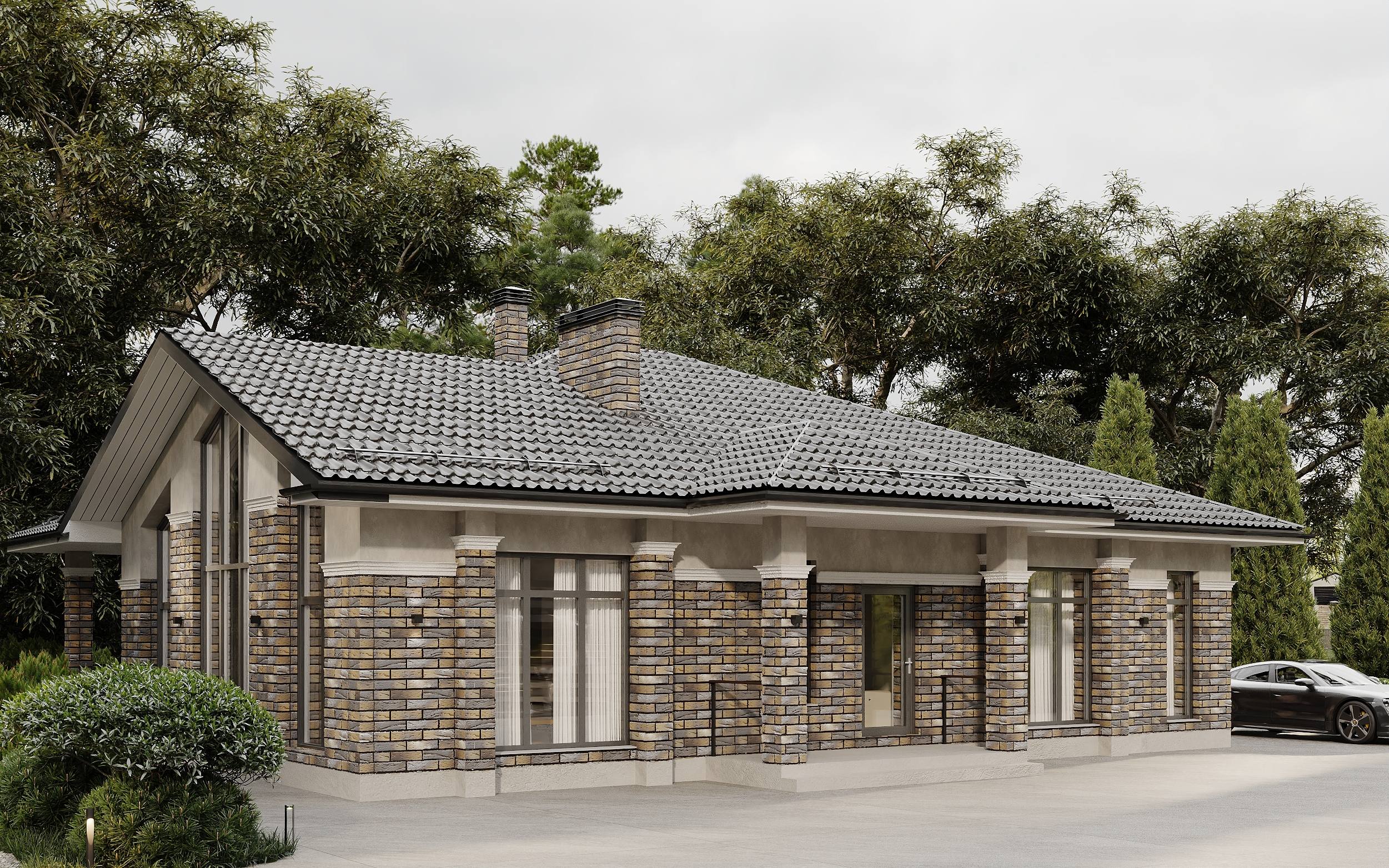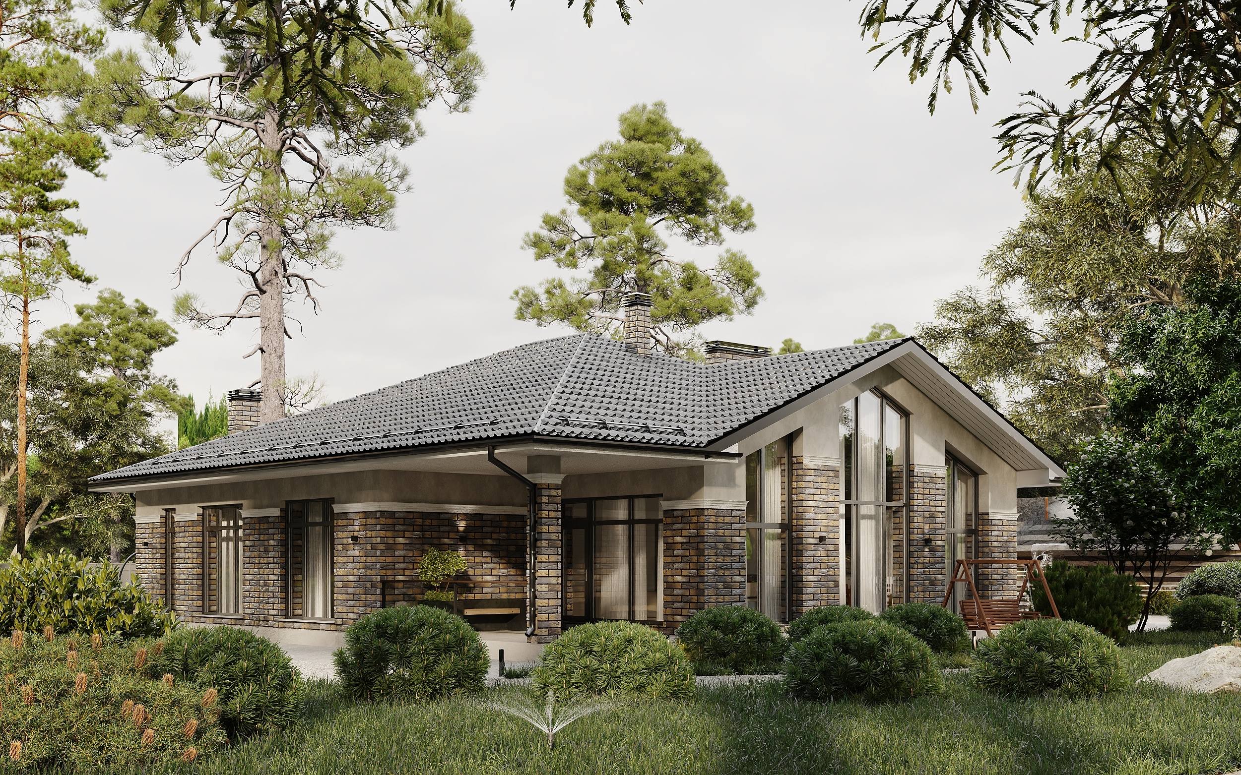 Большое панорамное остекление. Переменная высота помещений. Благодаря такому приему зона гостиной за счет увеличенной высоты ощущается еще больше и объемнее.